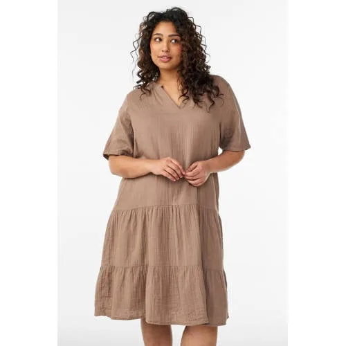 Voor een luchtige zomerdag of een ontspannen werkdag is deze Zizzi katoenen korte jurk een praktische keuze. De jurk is gemaakt van 100 procent katoen mousseline, een soepele en zachte stof met een lichte structuur. Het all over patroon zorgt voor een levendig geheel, terwijl de korte lengte en half lange mouwen bijdragen aan een open en lichte uitstraling.Lichte jurk met doordachte details Gemaakt van ademend katoen mousseline, prettig voor warme dagen Korte lengte, ideaal met sandalen, sneakers of enkellaarsjes Half lange mouwen bieden net wat extra bedekking V-hals met open halslijn rond de hals en borst Geen sluiting, de jurk trek je eenvoudig over het hoofd aan Onderdeel van het grote maten assortiment, met aandacht voor pasvorm Geschikt voor wolwas en lauw strijkbaar, voor eenvoudig onderhoudVeelzijdig voor elke dagDeze korte zomerjurk uit de 'Daily' collectie is ontworpen voor dagelijks gebruik. Draag de jurk met sandalen op vakantie of met sneakers en een denim jasje naar kantoor. De luchtige stof en het patroon maken het een geschikt item voor zowel vrije tijd als een casual afspraak.Zizzi: mode met aandacht voor maat en comfortZizzi richt zich op vrouwen die graag mode dragen in grotere maten, zonder concessies te doen aan stijl en draaggemak. De ontwerpen zijn eigentijds en praktisch, met stoffen en pasvormen die prettig aanvoelen in het dagelijks leven.Een toegankelijke jurk die je het hele seizoen eenvoudig combineert wanneer je iets lichts en gemakkelijk wilt aantrekken.