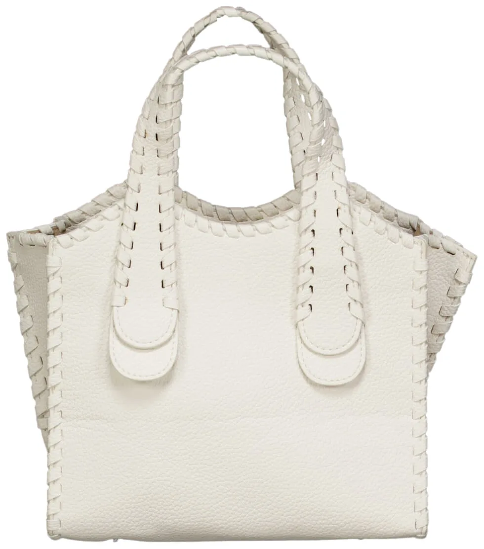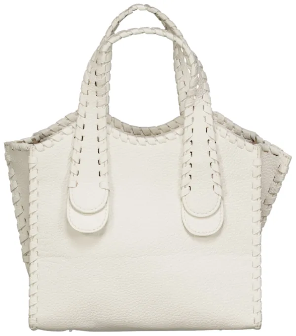 Tas Zo met casual, sophisticated uitstraling en effen afwerking. Het compacte model heeft twee stevige handgrepen, een gestructureerd, korrelig oppervlak, brede zijpanelen en opvallende gevlochten sierstiksels langs randen en hengsels, waardoor de dames tas netjes in vorm blijft.
