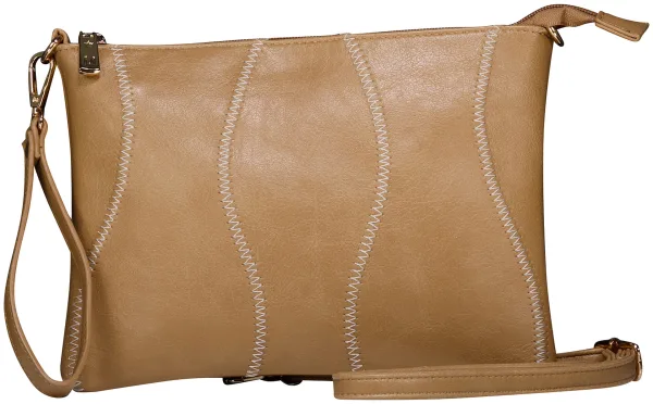 Tas van Zo met een effen, minimalistisch ontwerp en een ritssluiting. De gladde afwerking, golvende sierstiksels en het metalen logo geven een rustige, verzorgde uitstraling. Voorzien van polsband en afneembare schouderriem, plus een ritsvak aan de buitenzijde. Draagt makkelijk casual of netjes.