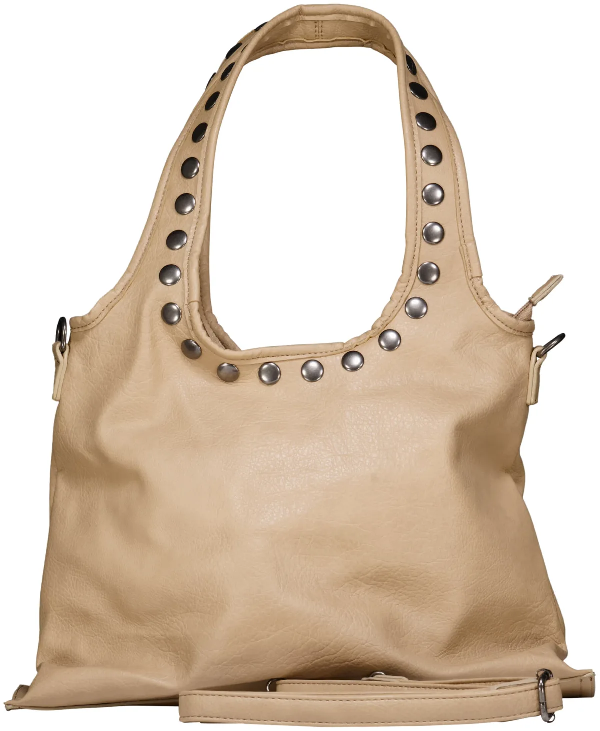 Tas van Zo, tas met casual, sophisticated uitstraling en effen afwerking. Het soepele materiaal heeft een brede schouderband met metalen studs, een ritsvak aan de voorkant en een afneembare, verstelbare schouderriem met clips. Handig voor dagelijks gebruik en netjes te combineren.
