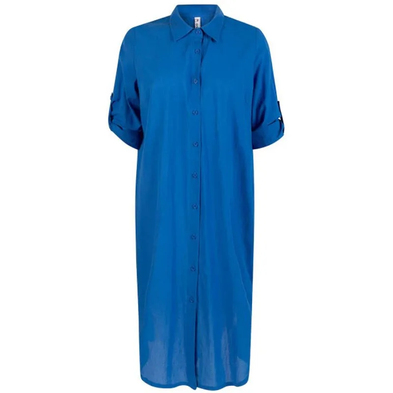 De Zoso Blouse Long Florence in de kleurcombinatie Strong Blue/ Strong blue is een elegante en verfrissende toevoeging aan je garderobe.Extra details Tekst op de achterkant Doorknoop Klassieke kraagMateriaal:100% KatoenWasvoorschrift:Machinewas max. Fijnwas 30 graden Celsius. Niet in droger
