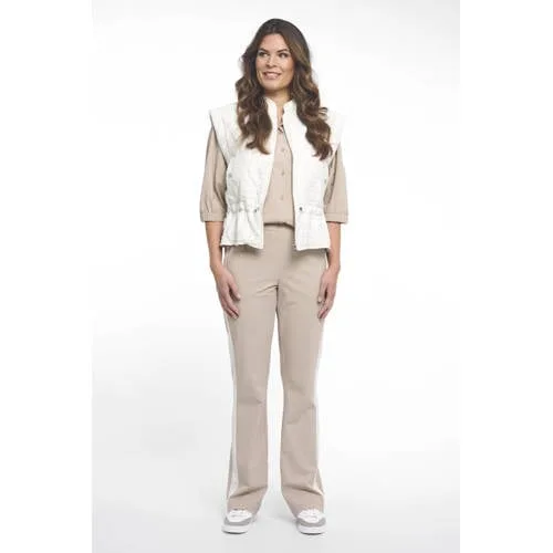 Voor een frisse, sportieve laag kies je voor deze Zoso dames bodywarmer ds jacket in wit. De korte lengte en mouwloze snit maken dit jack ideaal om over je favoriete trui, longsleeve of blouse te dragen. De effen witte kleur geeft elke outfit een heldere, moderne uitstraling en past moeiteloos bij jeans, een casual broek of een zwierige rok.Praktische details met een vrouwelijke touch Korte bodywarmer met opstaande kraag voor een moderne, sportieve look Mouwloos model, handig als extra laag zonder dat je bewegingsruimte verliest Gladde stof met lichte stretch, voelt soepel aan en sluit mooi aan Ritssluiting over de hele lengte, snel aan en uit Tunnelkoord in de zoom om de pasvorm naar wens aan te trekken Zijzakken om kleine essentials bij de hand te houden Effen witte kleur, makkelijk te combineren met zowel basic als opvallende itemsIdeaal voor laagjes in het voorjaarDeze bodywarmer is gemaakt voor het tussenseizoen. Draag het jack in de lente over een dunne trui tijdens een wandeling, over een T-shirt als het nog net te fris is of als stijlvol accent over een blouse naar je werk. De korte lengte laat je taille zien en geeft je outfit een verzorgd, vrouwelijk silhouet.Zoso: eigentijds en comfortabelZoso staat bekend om kleding die er verzorgd uitziet en toch comfortabel draagt. Met doordachte details, soepele materialen en een vrouwelijke pasvorm speelt het merk in op de dagelijkse kledingwensen van moderne vrouwen. De '261Miranda' stijl sluit daar naadloos op aan, met aandacht voor gemak en een frisse, eigentijdse look.Een veelzijdig laagje dat je garderobe klaar maakt voor elke lentedag.