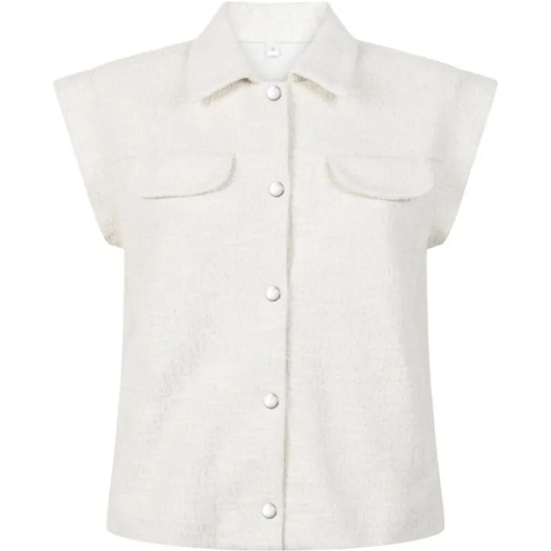 De Jacket Josine Offwhite 251 van het merk Zoso is een stijlvolle mouwloze jas, perfect voor het voorjaar of als laagje over een outfit. Uitgevoerd in een zachte offwhite tint, heeft deze jas een moderne en elegante uitstraling.Extra details zijn: Klassieke kraag Drukknoopsluiting Decoratieve borstzakken Comfortabele geweven stofMateriaal:39% Polyester, 35% Katoen, 18% Viscose, 7% Metallic, 6% ElastanWasvoorschrift:Machinewas max. Fijnwas 30 graden Celsius. Niet in droger