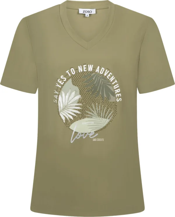 Het T-shirt Isa van Zoso is een casual dames T-shirt met een stijlvolle V-hals en korte mouwen. Dit grafisch geprinte shirt is perfect voor een relaxte dag. Ontdek de inspirerende boodschap en ervaar het comfort en de kwaliteit die dit T-shirt biedt.
