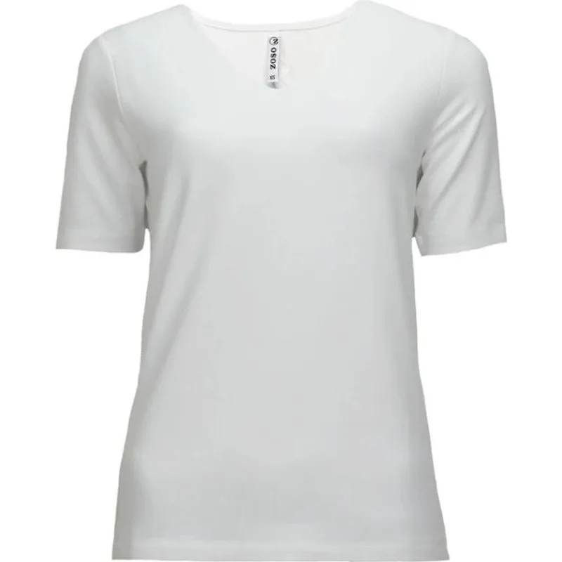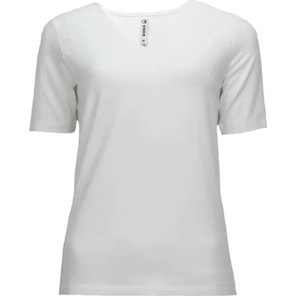 Deze witte top van Zoso met Vhals is een musthave voor je casual garderobe. Het aansluitende ontwerp en de stevige stof maken hem stijlvol en veelzijdig, perfect voor dagelijks gebruik. Extra details Korte mouwen Effen VhalsMateriaal:95% viscose 5% elastanWasvoorschrift:Machinewas max. Fijnwas 30 graden Celsius. Niet in droger