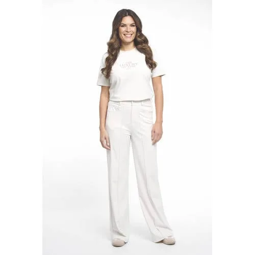 Geef je garderobe een frisse basis met het Zoso T-shirt 261Maaike. Dit witte dames T-shirt is een veelzijdig bovenstuk dat je het hele seizoen door draagt. De soepele stof met stretch voelt glad aan op de huid en volgt je bewegingen gemakkelijk. De ronde hals en korte, rechte mouwen zorgen voor een rustige uitstraling, terwijl de tekstprint aan de voorzijde voor een moderne touch zorgt.Details die het iedere dag makkelijk maken Wit dames T-shirt met eigentijdse tekstprint aan de voorkant Ronde hals voor een vrouwelijke, toegankelijke look Korte, rechte mouwen die comfortabel vallen rond de bovenarmen Elastisch materiaal dat prettig meebeweegt tijdens je dag Geen zakken voor een glad en strak voorpand Geschikt voor het lenteseizoen en daarbuiten Onderdeel van de Feminine collectie, met zachte en vrouwelijke lijnenGemakkelijk te combineren in je dagelijkse outfitsDit T-shirt draag je net zo makkelijk op een jeans als op een rok. Voor een casual dag combineer je het met een comfortabele broek en sneakers. Wil je het netter stylen, dan staat het mooi onder een blazer met een rechte pantalon. De witte kleur maakt het eenvoudig te matchen met de rest van je kledingkast.Zoso: moderne mode met een vrouwelijke twistZoso richt zich op modieuze vrouwen die houden van draagbare items met een actuele look. De ontwerpen zijn afgestemd op het dagelijks leven, met aandacht voor pasvorm en prettige stoffen. Je kiest met Zoso voor kleding die er verzorgd uitziet en tegelijk relaxed aanvoelt.Een betrouwbaar T-shirt dat je keer op keer pakt, van drukke werkdagen tot ontspannen weekendmomenten.