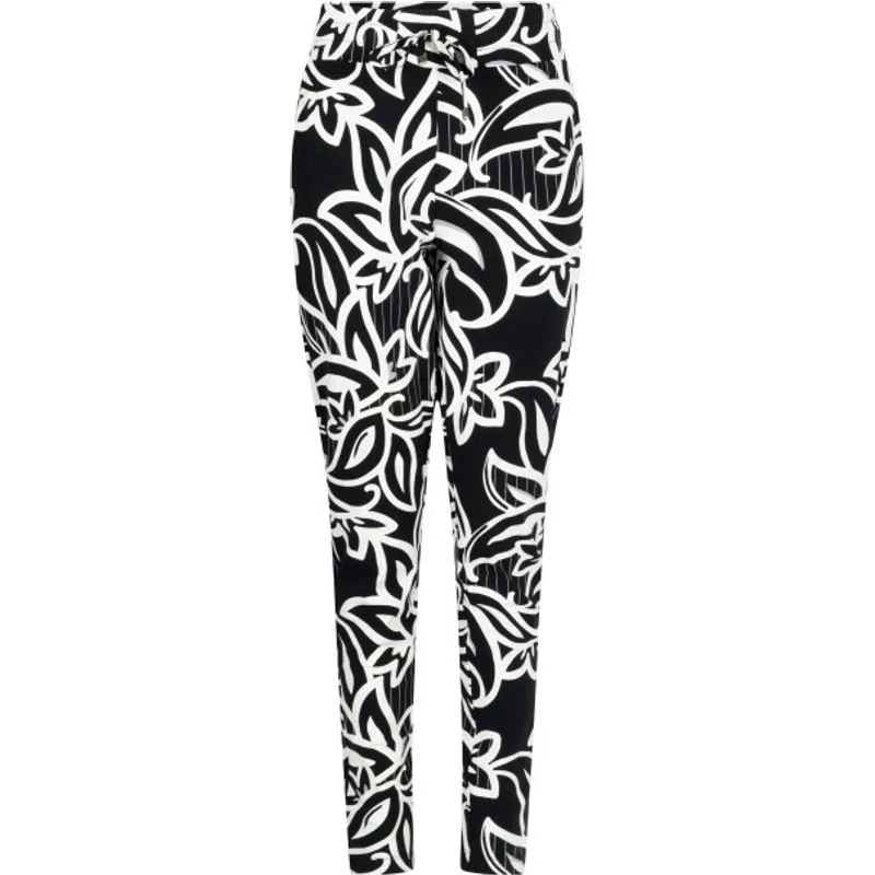 De Travel broek Amy black ivory van Zoso is een opvallende keuze voor de modebewuste vrouw. Met zijn gedurfde zwartwit patroon, waarin abstracte bloemen en strepen samenkomen, biedt deze broek een unieke mix van modern design en klassieke kleurcombinaties.Extra details zijn: Selffabric strikceintuur in taille. Steekzakken in voorpand. Opgestikte zakken met klep op achterpand. Front en Backyoke.Materiaal:80% Polyamide 20% ElastaanWasvoorschrift:Machinewas max. Fijnwas 30 graden Celsius. Niet in droger