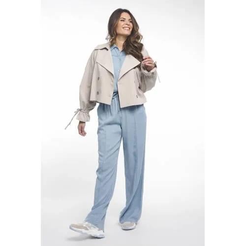 Geef je garderobe een frisse update met de Zoso ds jacket 261Miranda jas in zandkleur. Dit korte jasje heeft de uitstraling van een lichte trenchcoat, maar dan in een compacte, draagbare lengte. De effen zandtint is rustig en zacht, waardoor het jasje makkelijk te combineren is met je favoriete outfits. Ideaal als tussenjas voor het voorjaar, wanneer je iets nodig hebt dat net wat meer warmte en structuur geeft aan je look.Verfijnde details voor elke dag Korte lengte die mooi valt op een jeans, pantalon of jurk Reverskraag voor een nette, verzorgde uitstraling Double breasted sluiting met een dubbele rij knopen voor extra accent aan de voorkant Rechte mouwen voor een rustige en tijdloze look Subtiel strikje als detail voor een vrouwelijke touch Effen zandkleur die goed past bij lichte en donkere tintenEen licht jasje voor het voorjaarDit jasje uit de Feminine collectie is perfect als tussenjas in de lente. Draag het open over een T-shirt met een jeans op een zachte dag, of gesloten over een blouse wanneer het nog wat frisser is. De zandkleur geeft direct een rustige basis aan je outfit.Zoso: moderne stijl met een vrouwelijke touchZoso staat voor modieuze kleding met een vrouwelijke uitstraling en veel draaggemak. De items zijn ontworpen zodat je ze makkelijk combineert in het dagelijkse leven, of je nu onderweg bent naar je werk, een lunchdate of een dagje shoppen.Een veelzijdig jasje dat je het hele seizoen door graag uit de kast pakt.