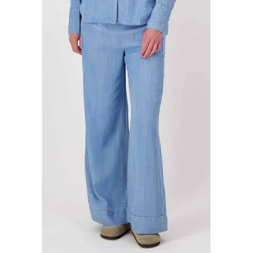 Deze Zusss dames broek in light blue denim is een fijne basic voor dagen waarop je er verzorgd uit wilt zien en je toch vrij wilt bewegen. De lichte denimkleur oogt fris en rustig, terwijl het rechte model net genoeg structuur geeft aan je outfit. Dankzij het soepele materiaal valt de broek mooi langs je benen en voelt het comfortabel aan op de huid.Comfortabele pasvorm met rustige uitstraling Gemaakt van 100% lyocell, een zachte en soepele stof met een fraaie valling Rechte pijpen voor een tijdloze, ontspannen look Elastische tailleband en regular waist voor een comfortabele pasvorm rond je middel Praktische zijzakken voor kleine essentials Effen light blue denim kleur die makkelijk combineert met jouw favoriete tops Lange broek, ideaal voor het voorjaar en koele dagen in de zomerEenvoudig te stylen, elke dag weerDeze casual broek past goed bij een luchtige blouse, een basic T-shirt of een fijngebreide trui. Sneakers eronder voor een relaxte dag, of nette sandalen als je outfit iets gekleder mag zijn. De rechte pasvorm en rustige kleur maken het een veelzijdig item in je garderobe.Zusss: eigentijds en toegankelijkZusss staat bekend om collecties met een rustige, vrouwelijke uitstraling en doordachte details. De items laten zich makkelijk combineren, waardoor je met weinig moeite een complete look samenstelt. Met deze broek kies je voor een kledingstuk dat past binnen die herkenbare, toegankelijke stijl van Zusss.Een fijne basisbroek waar je in elk seizoen opnieuw naar grijpt.