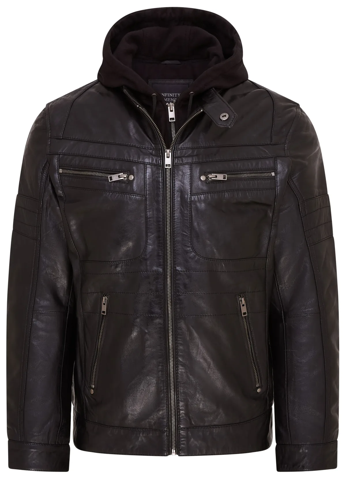 Zwart leren bikerjack met capuchon voor heren – Stavern Prijzen