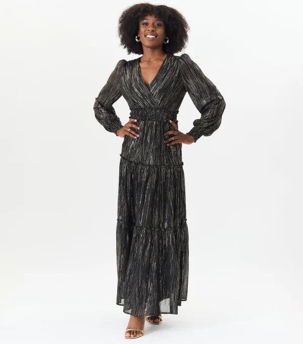 Zwart Lurex Chiffon Gelegenheid Gestaffelde Maxi Dres Prijzen