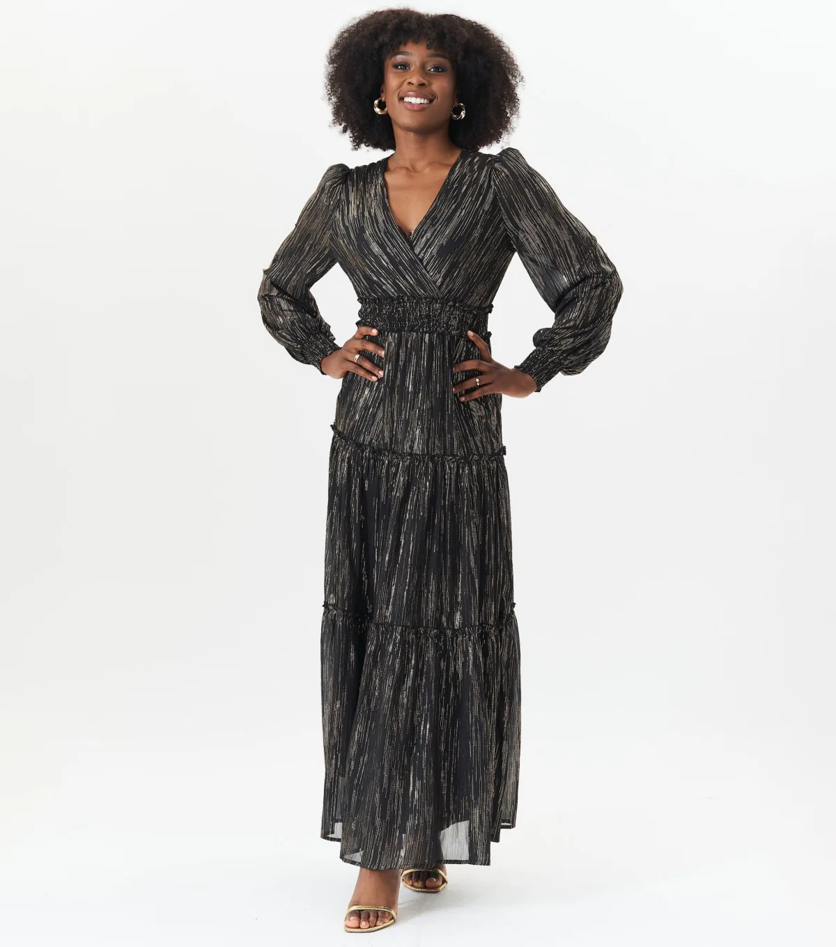 - Bij secretsales.nl kun je Zwart Lurex Chiffon Gelegenheid Gestaffelde Maxi Dres kopen voor slechts €60,03