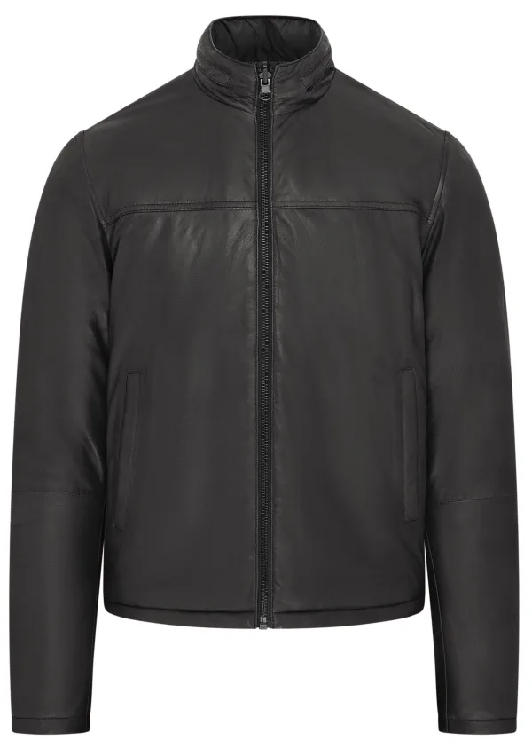 Zwart omkeerbaar leren bomberjack voor heren – Raufoss Prijzen