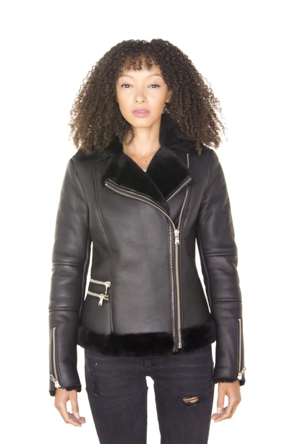 Zwart schapenvacht pilotenjack voor dames in Kiev