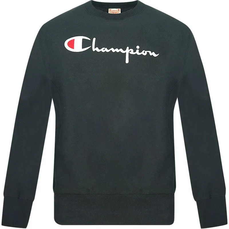 Zwart sweatshirt met Champion Script-logo. Champion zwarte trui met ronde hals. Merklogo op de borst. 73% katoen 27% polyester. Elastische mouw- en taille-uiteinden. Productcode - 215211 KK001