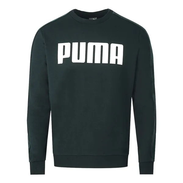 Zwart sweatshirt met fluweelband en logo van Puma. Zwart sweatshirt met fluweelband en logo van Puma. Elastische kraag, mouwuiteinden en taille. Grote branding op de borst, fluwelen streep langs de armen. Normale pasvorm, valt normaal qua maat. 844461-04
