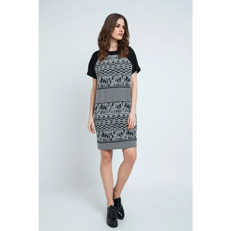 Zwart-wit recht jurkje met korte mouwen Prijzen