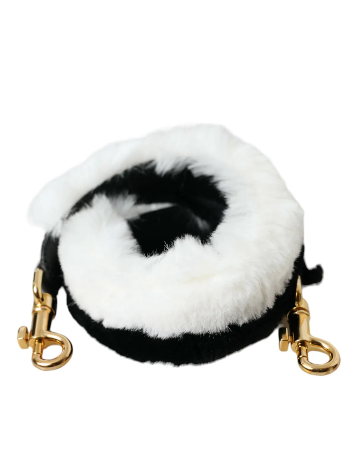 DOLCE & GABBANA Prachtige, gloednieuwe tas met tags 100% Authentieke Dolce & Gabbana handtasaccessoire. Model: Schouderband Geslacht: Vrouwen Kleur: Zwart en wit, gouden metalen details Materiaal: Lapinbont Twee karabijnsluitingen Logo-details Gemaakt in Italië Afmetingen: 57cm x 3cm