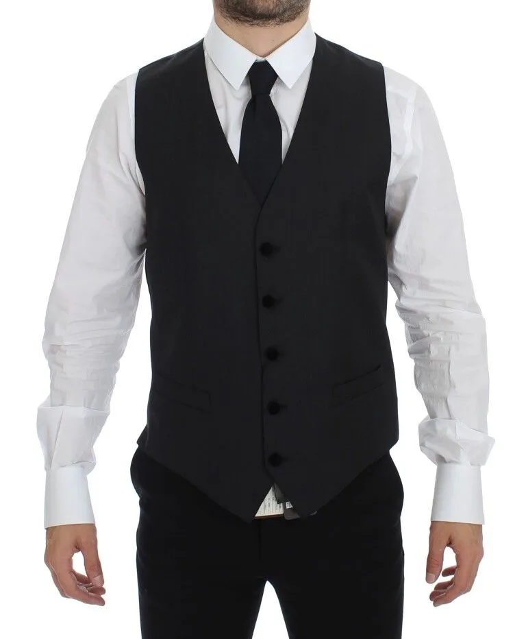 Verhoog, verfijn en trek de aandacht. Deze Dolce & Gabbana wollen gilet voegt onmiddellijk een vleugje tijdloze verfijning toe aan elke formele outfit. Het klassieke V-halsontwerp zorgt voor een scherpe, opvallende uitstraling, terwijl de slim fit een moderne silhoët biedt. Gemaakt van hoogwaardige wol voor een luxe gevoel. De duurzame constructie garandeert blijvende elegantie. Perfect voor bruiloften, zakelijke bijeenkomsten of elk evenement waar het maken van een blijvende indruk belangrijk is. Alleen chemisch reinigen.