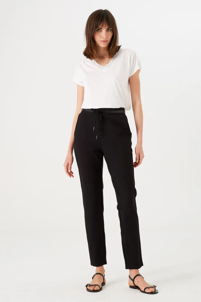 Broek van punta di roma met tunnelkoord. Deze broek heeft een slim leg, een medium taille en een elastische tailleband. Dit item is gemaakt van 61% viscose, 34% polyamide en 5% elastaan.