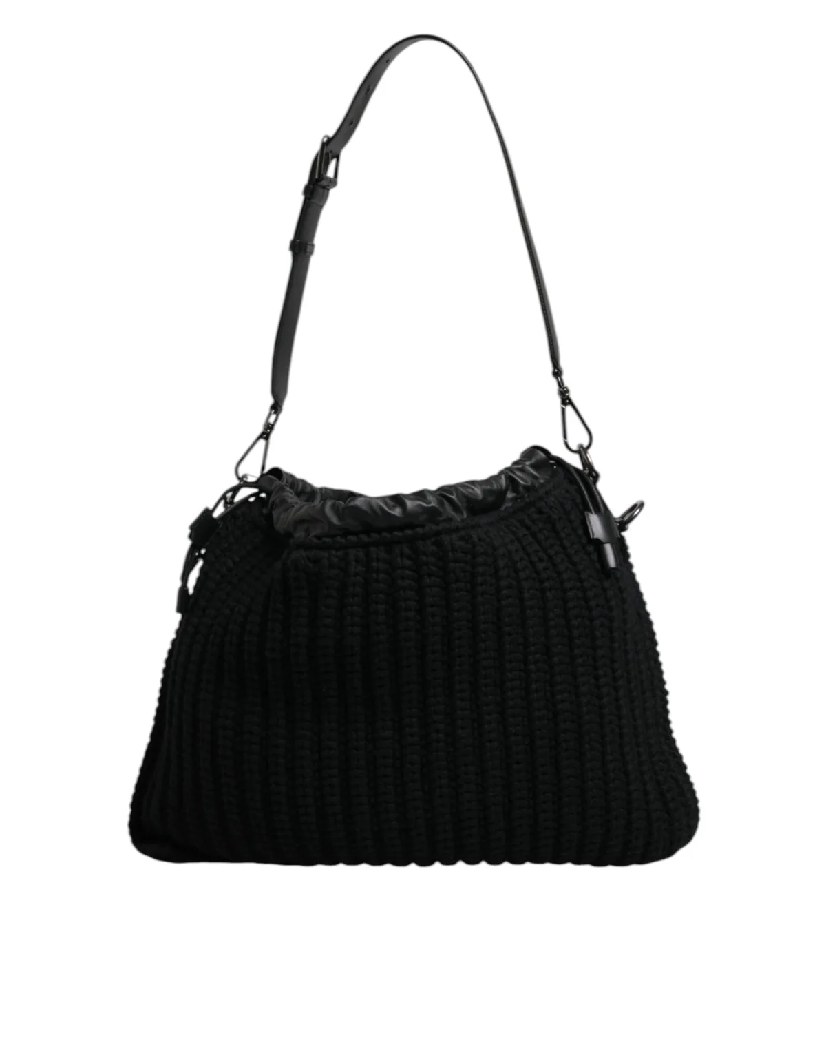 Zwarte Cashmere Gebreide Leren Schoudertas