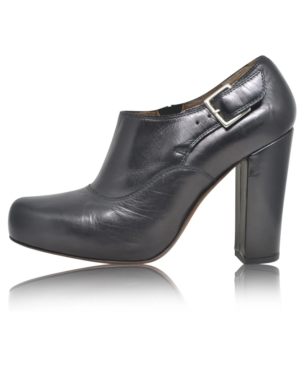 Aanbevolen verkoopprijs MATERIAAL: Leer MAAT: 38 HAK: 120 mm, 4,75 inch STAAT: UITSTEKEND Marni Zwarte Lage Enkellaarsjes met Gesp en Ronde Neus Kleur: zwart | zwart Staat: uitstekend Maat: EU | 38 Gebruikssporen: Nee SKU: 444455 / SVSGSH17463 / SVSGSH17463