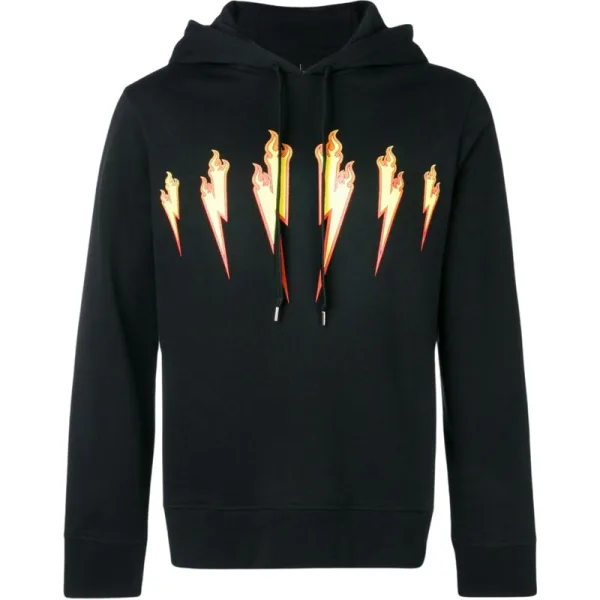 Zwarte hoodie met Neil Barrett Thunder Flame Lightning Bolt-logo Prijzen