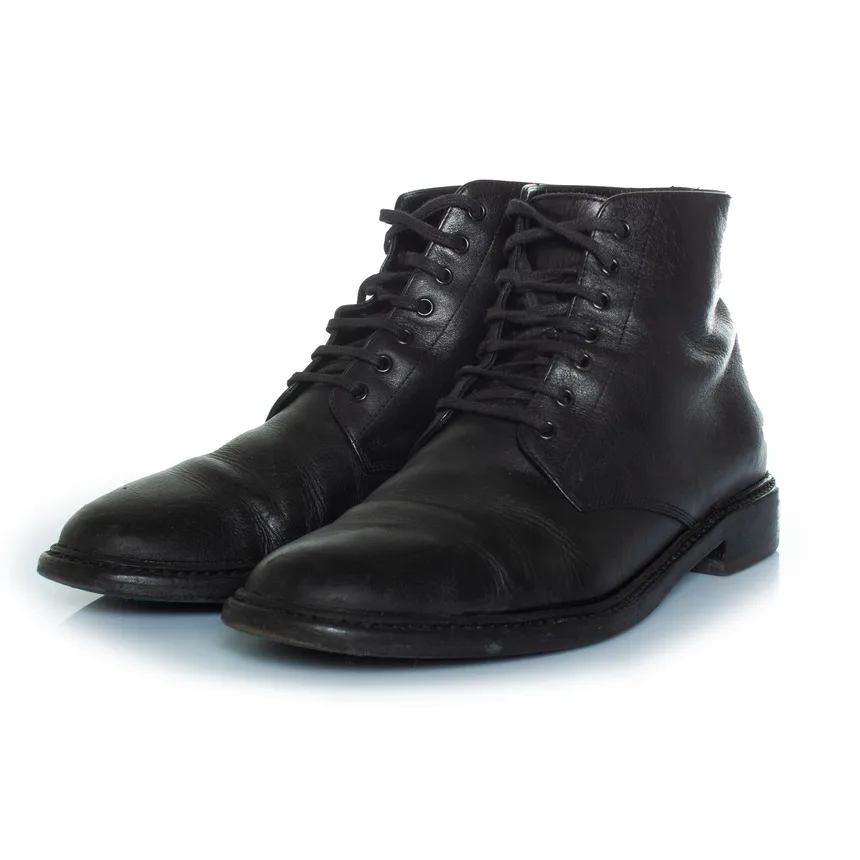 VINTAGE, RRP ALS NIEUW Saint Laurent, Veterschoenen tot de enkel van zwart leer. Het artikel verkeert in goede staat. STAAT: goede staat MAAT: 38 BINNENZOLMAAT: 25 cm HIELMAAT: 3 cm PLATFORM: 1 cm SCHOENHOOGTE: 11 cm BOVENWIJDTE: 10 cm STOF: leer KLEUR: zwart