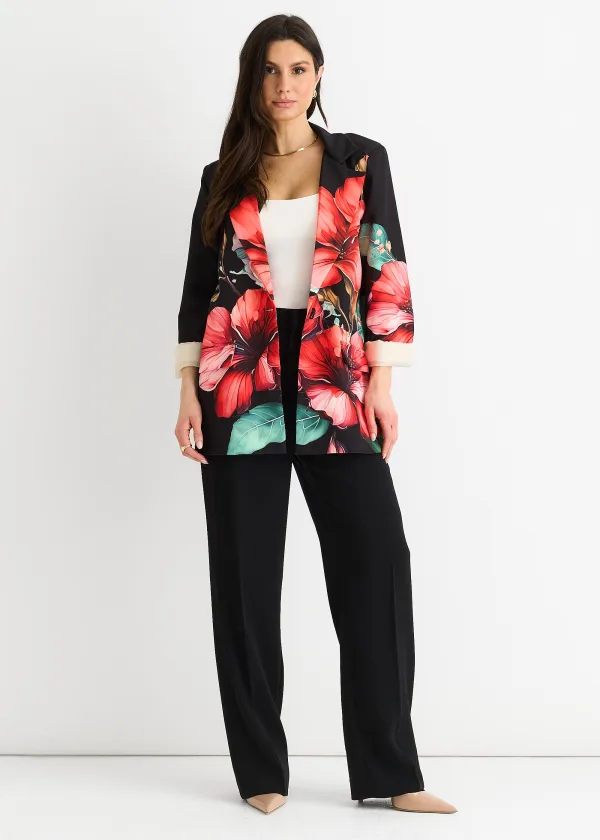 Zwarte oversized blazer met bloemenprint en contrasterende voering