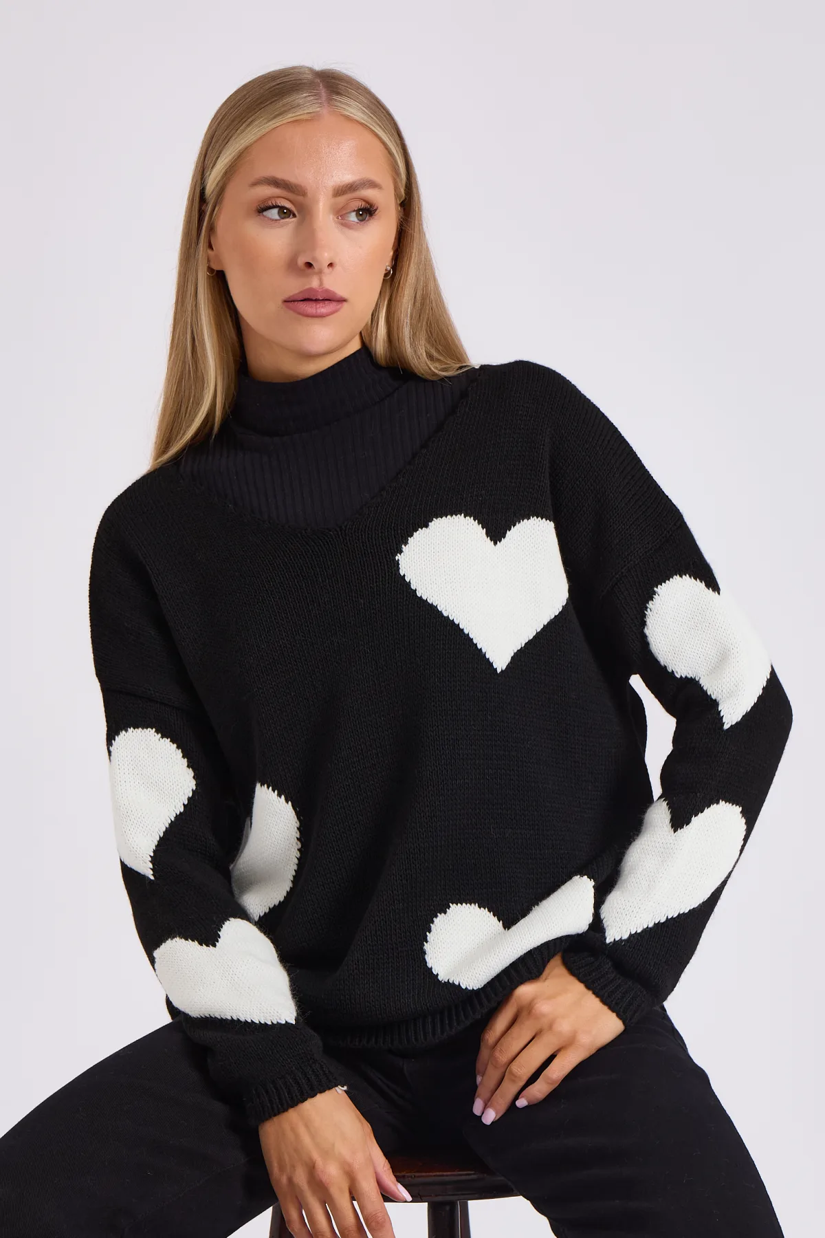 Geef je mode een boost met onze zwarte oversized hartgebreide trui met V-hals. Deze stijlvolle en comfortabele trui heeft een flatterende V-hals en een oversized pasvorm. Hij is gemaakt met een prachtig hartvormig breipatroon en houdt je het hele seizoen gezellig en trendy. Voeg vandaag nog een vleugje kleur toe aan je garderobe!