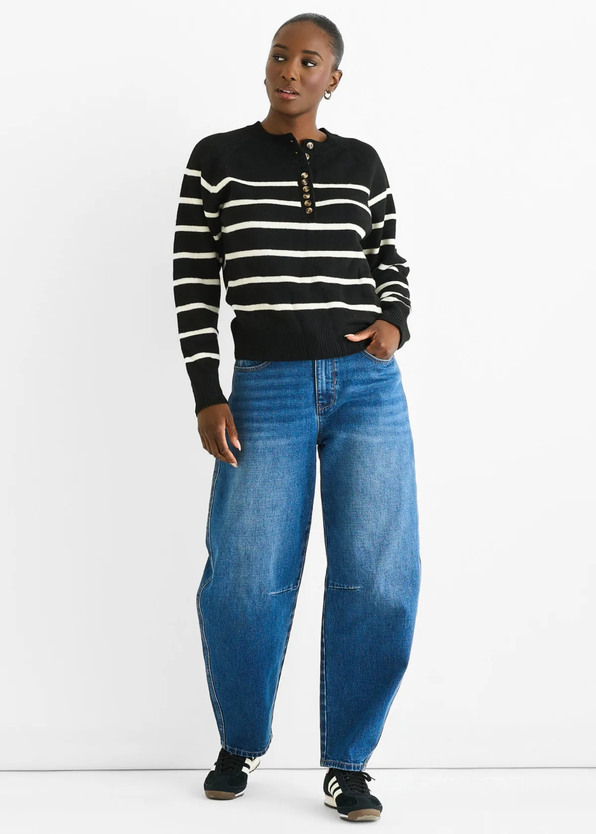 Zwarte Recycle Streep Knopen Loose Fit Gebreide Trui Prijzen