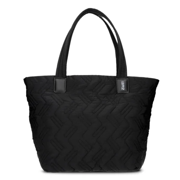 Design: Ruim hoofdvak; Type sluiting: Ritssluiting; Materiaal: Gerecycled materiaal; Motief: Visgraat; Materiaal: Textiel; Hengsellengte: Lange schouderriemen, Korte schouderriemen