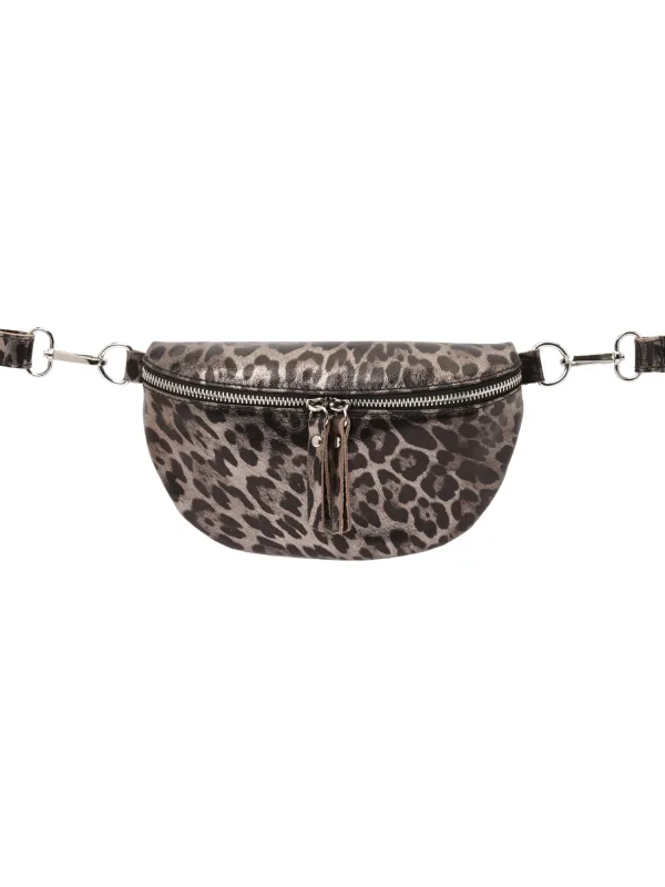 Design: Afneembare banden, Combideelbare ritssluiting; Type sluiting: Ritssluiting; Materiaal: Bont; Motief: Dierenprint; Materiaal: Glad leer; Extra's: All-over patroon, Met textuur; Hengsellengte: Lange schouderriemen