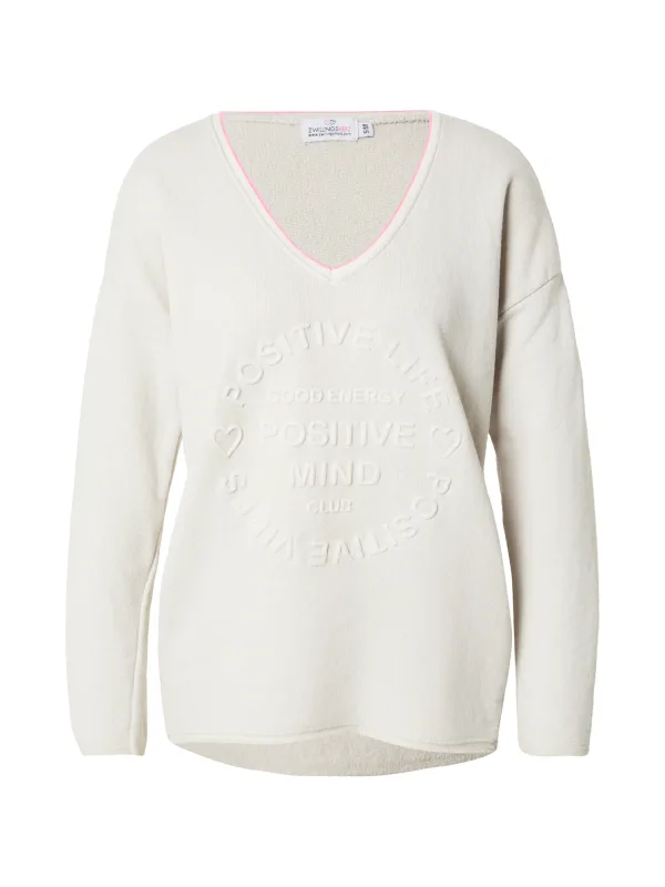 Zwillingsherz Sweatshirt ‘Positive Mind’ lichtbeige Prijzen