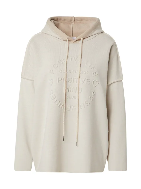 Design: Rechte zoom, Capuchon met trekkoord, Overcut schouder; Materiaal: Knitwear; Halstype: Capuchon; Motief: Tekst print; Extra's: Binnenstebuiten naden, Met textuur, Voelt zacht aan; Pasvorm: Losse pasvorm; Armlengte: Lange mouw; Lengte: Normale lengte