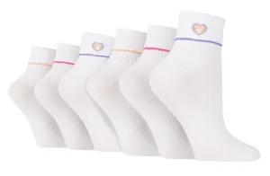 Wildfeet – Dames 6 Paar Lounge Sokken – Geribbeld Geborduurde Lounge Sokken – Hart