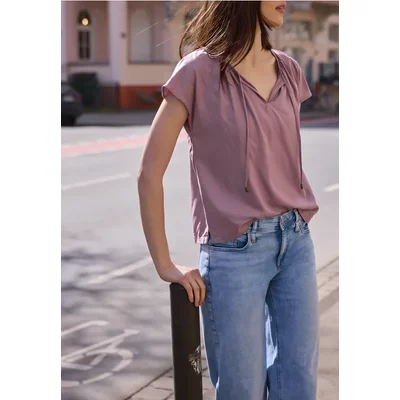 Street One Dames Shirt met U-boot en geribd detail in Blauw