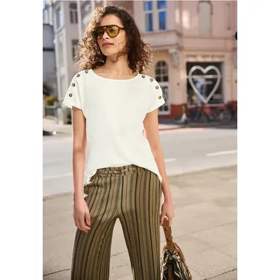 Street One Dames Gedessineerde jersey top in Beige|Multicolour|Blauw