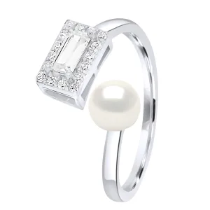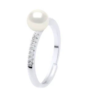 Verstelbare Ring Cubic Zirconia – Echte Gekweekte Zoetwaterparel Knop 5-6 mm