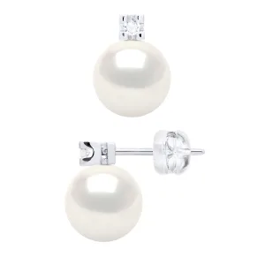 Oorbellen Prestige – Diamanten 0,04 Ct – Kwaliteit HSI – Wit Goud 375 en Echte Zoetwaterparels Rond 8-9 mm