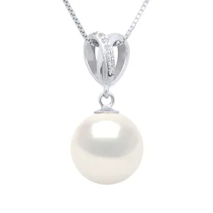 Hanger Dubbele Knoop Wit Goud – Diamanten 0,03 Cts – Echte Gecultiveerde Zoetwaterparel Ronde 10-11 mm