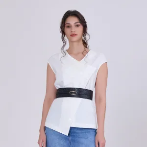 Geplooide asymmetrische top met dubbele borst