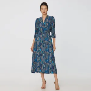 Grafische print V-hals midi-wikkeljurk