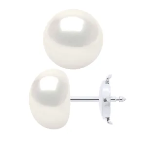 Oorbellen – Wit Goud – Echte Gekweekte Zoetwaterparels Knop 9-10 mm