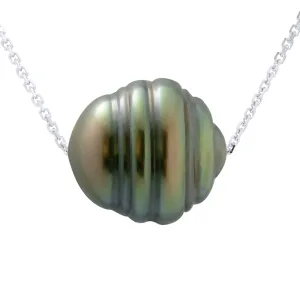 Hanger Dubbele Knoop Wit Goud – Echte Gecultiveerde Tahiti Parel Rond 10-11 mm