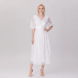 Jurk met pofmouwen en riem van kant