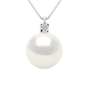 Halsketting Sieraden 0,02 Cts Wit Goud en Echte Gekweekte Zoetwaterparel Rond 10-11 mm