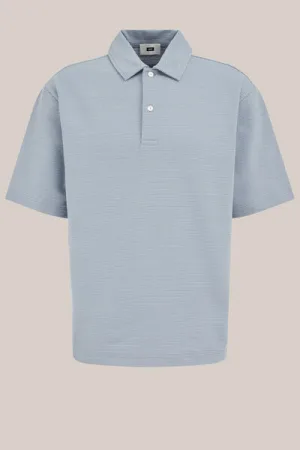 WE Fashion – Heren boxy fit polo met structuur – Boxy Fit – Lichtblauw – Katoen –