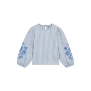 WE Fashion gestreepte gebloemde blousetop lichtblauw