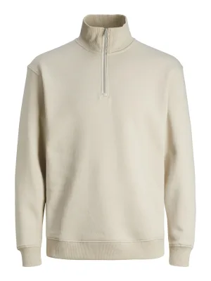 JACK & JONES Bradley sweat half zip regular fit – heren schipperstrui katoenmengsel met opstaande boord – beige